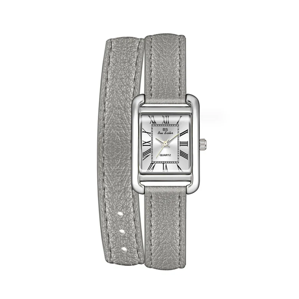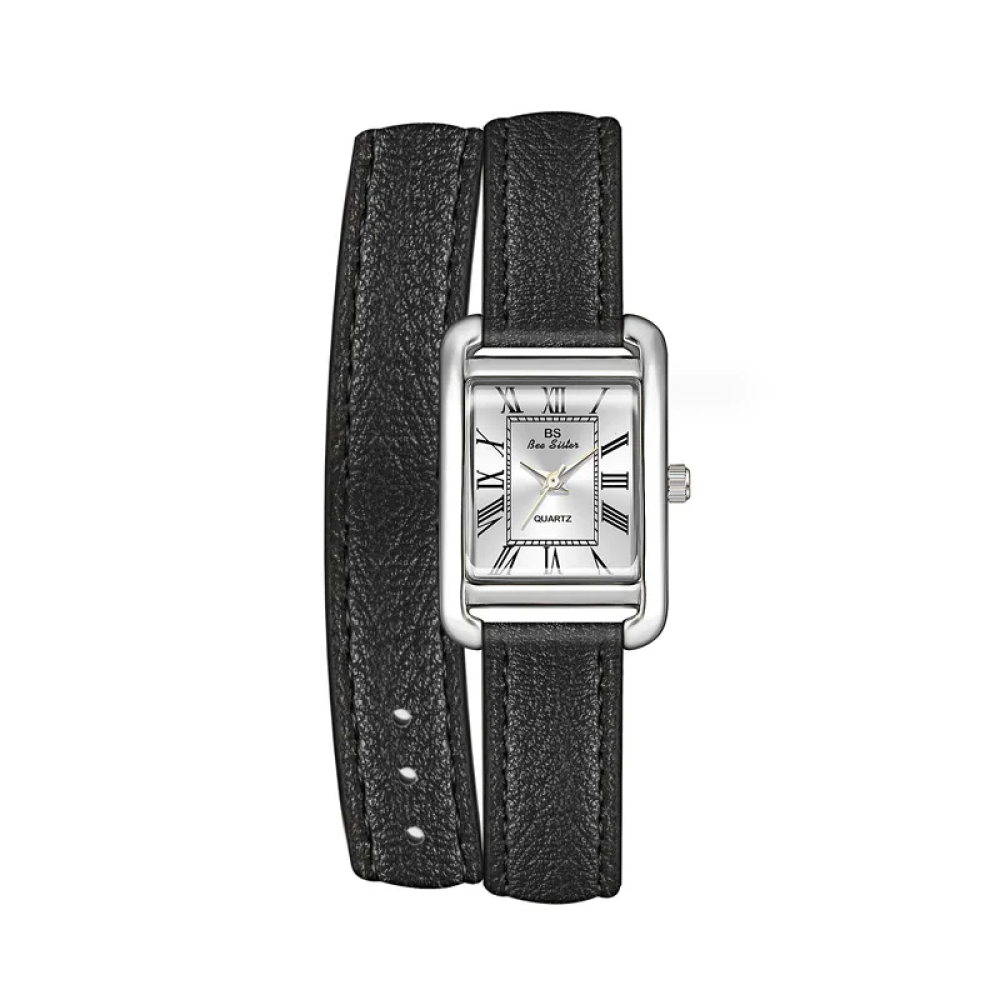 - ساعة جلد نسائية بحزام جلدي مزدوج اللف يضمن راحة مثالية ومظهراً عصريًا.
